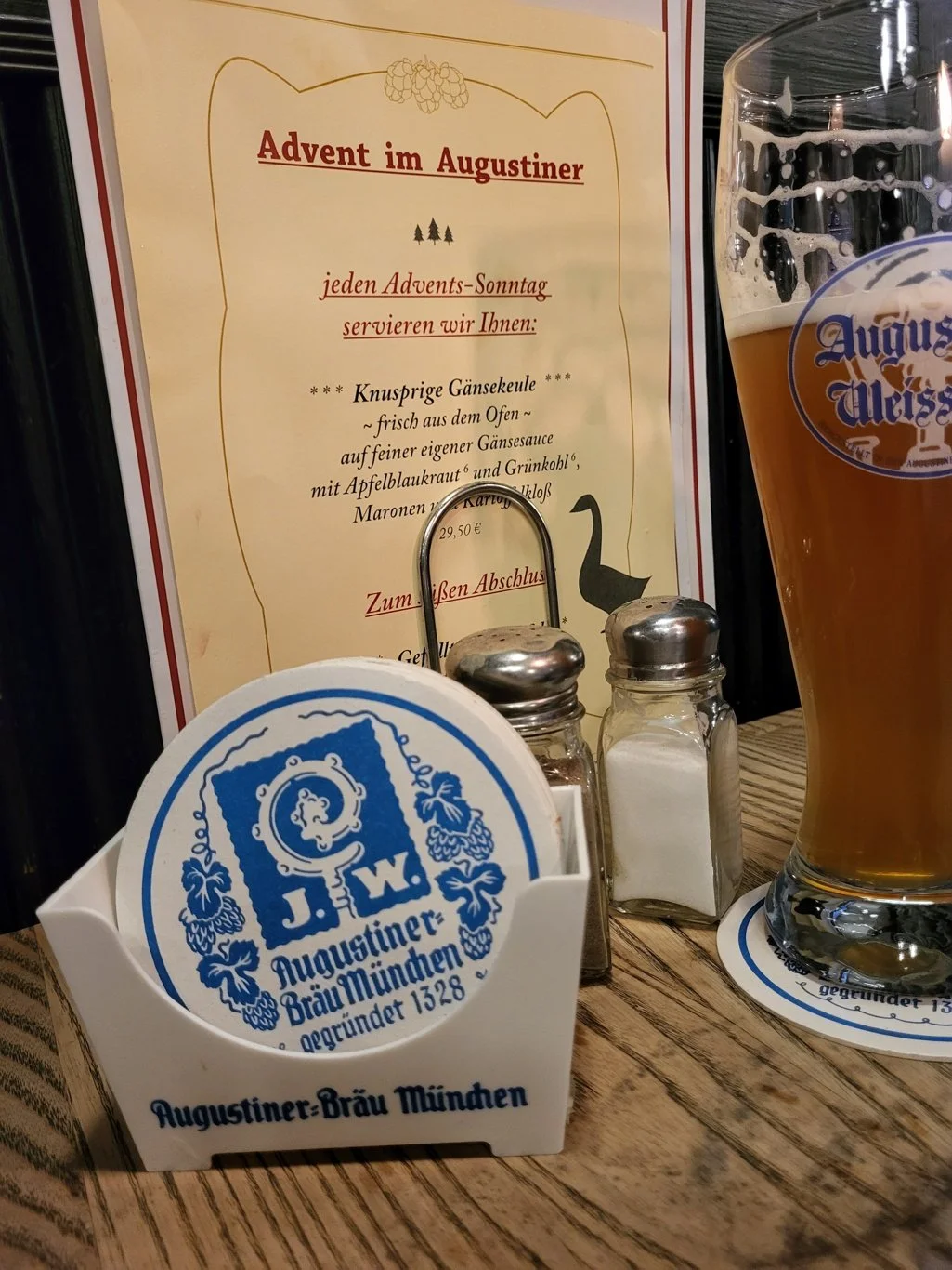 We had planned our day carefully, thinking that we'd go from the concert to Mitte on the UBahn, where we'd booked a table for lunch at 2pm at another favourite haunt, the Augustinerstube in Gendarmenmarkt. We envisaged spending any spare time at the Christmas market there - until we arrived and saw all the road works.