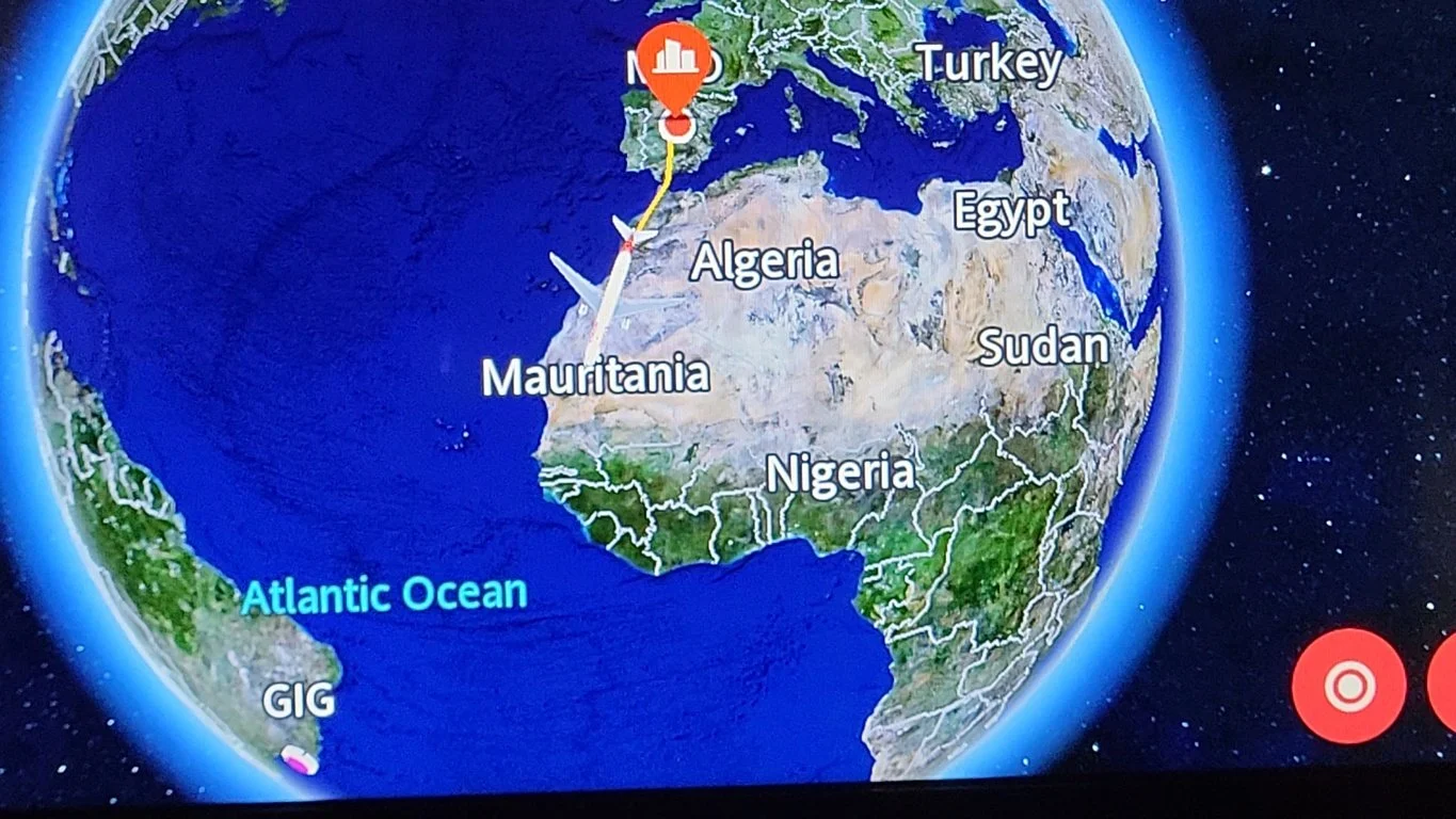Once underway, I explored the wifi (wiffy in Spanish 😊) and confirmed that yes, it's a free service in the business cabin, enabling me to have a quick Whatsapp catch up with Arthur and his Daddy 🥰 somewhere off the coast of Guinea-Bissau,