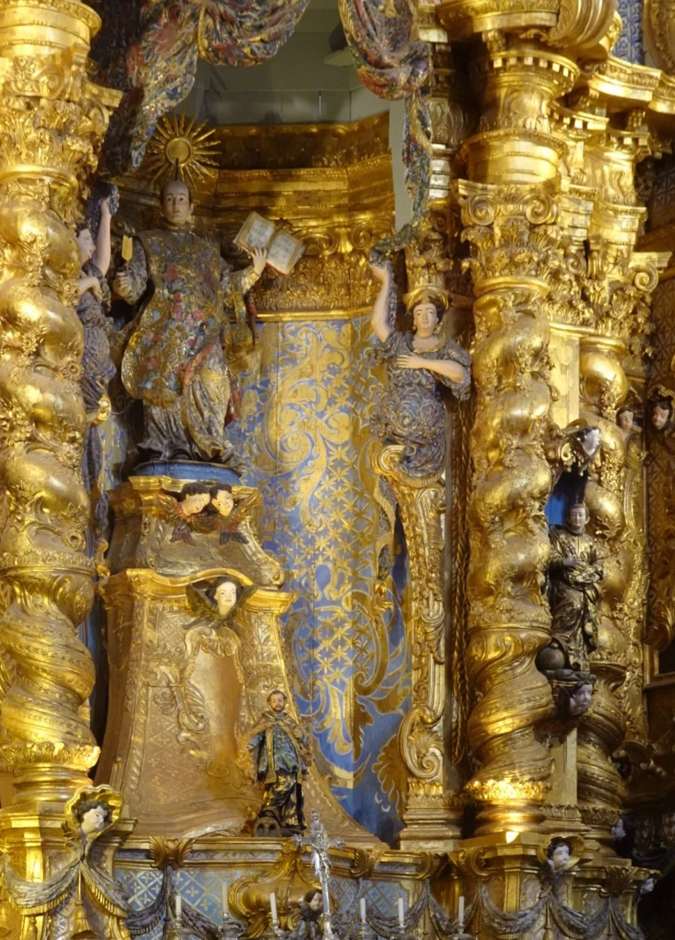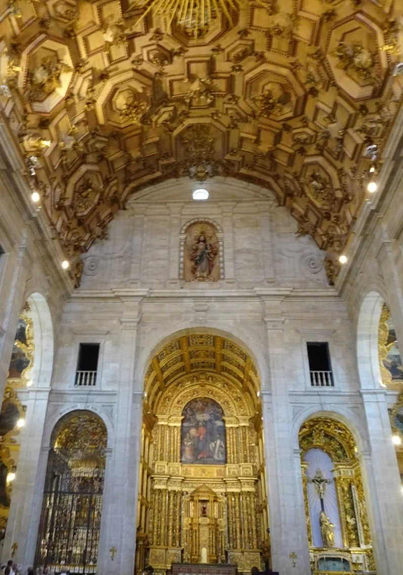 The interior of the Cathedral is mostly Carrera marble and decorated in Mannerist style, though every side chapel and the main altar area of the nave was covered in gold. Each of those small chapels - female saints on the right, male on the left - was in a different style, some baroque, some Rococo.
