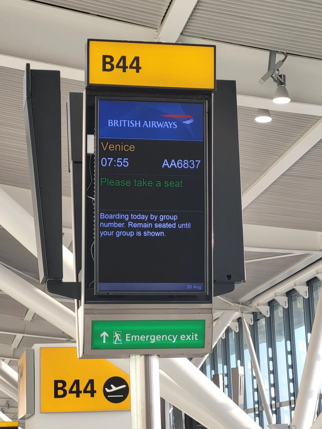 So we waited. Then waited some more. Our flight eventually took off about an hour late, the luggage having been satisfactorily stowed.