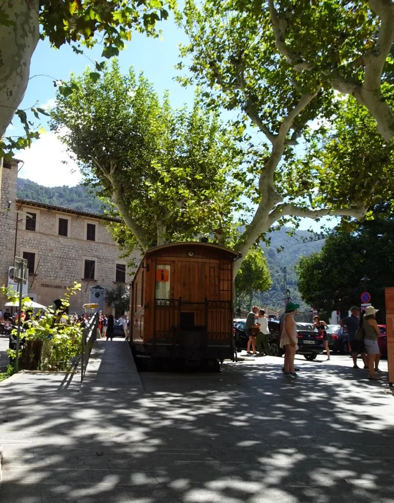 Our meeting point was on the platform in the station, from where a train would take us back down into Palma. A wooden carriage had been reserved for us and we climbed aboard and took our seats by the open windows.