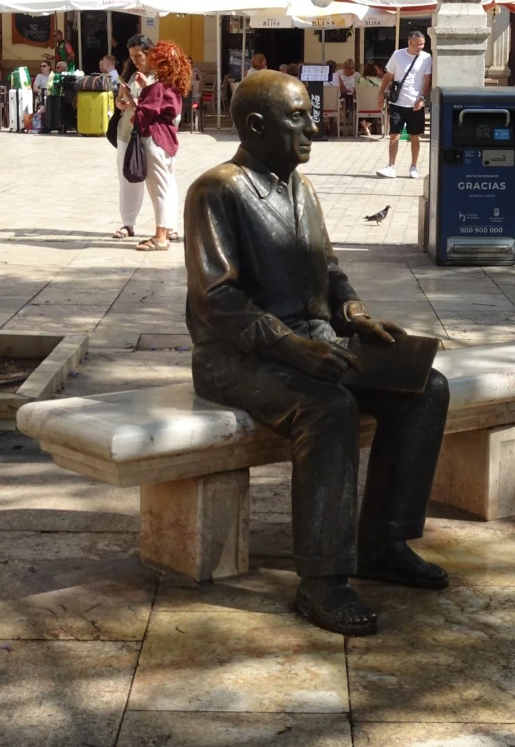 Here was a bronze of the artist, sitting on a bench. Quickly, whilst he had no companion sitting with him, I snapped his picture. There behind him was the apartment where he had been born - twice, according to legend. The midwife had declared him stillborn, but his uncle, a doctor, came into the room and breathed his cigar smoke in the baby's direction, at which point he coughed and was breathing again! Hmmm….