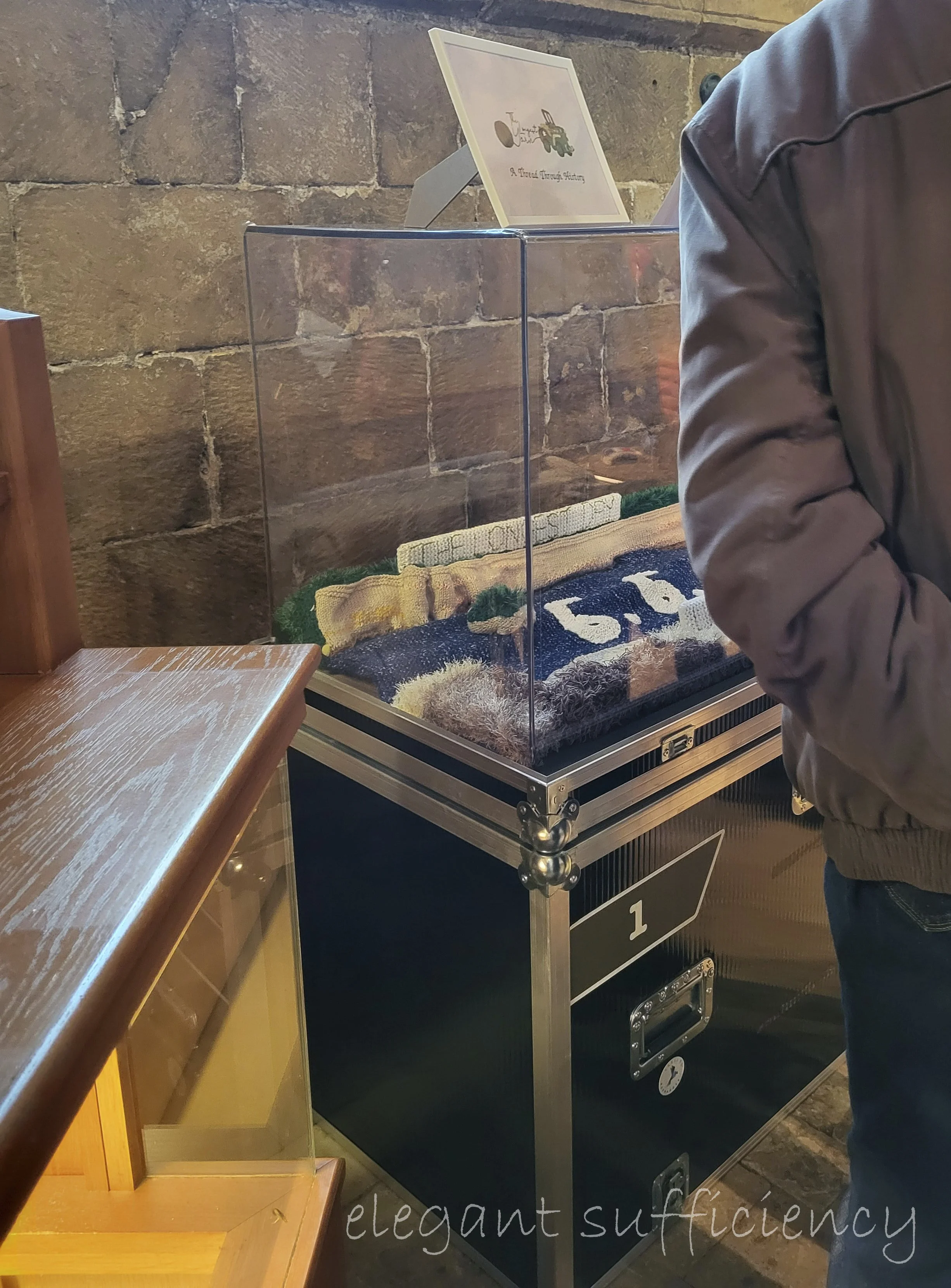 #1 was a knitted and crocheted date, setting the scene on the background of a shoreline, with “The Longest Day” in English and in French: a familiar name given to the 6th June, 1944, the date of the Normandy Landings, also known as D-day. The title of the exhibition - The Longest Yarn - is a clever play on words, for every one of these scenes is created using yarn of some kind, either knitted or crocheted. It really is quite remarkable.