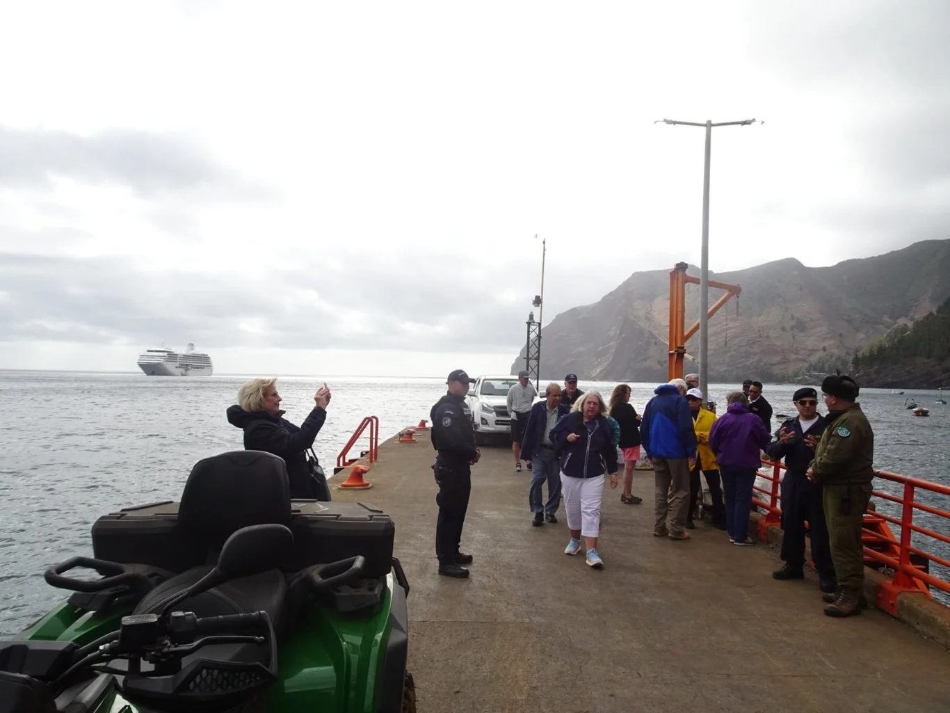 Another update. The tender had made it across and returned successfully and the port had been opened. We'd been given permission to land - hooray! However, there was a flight of twenty steep steps on the jetty, the ground was uneven and anyone with mobility issues should assess their capability to manage such challenges. Care was to be take at all times.