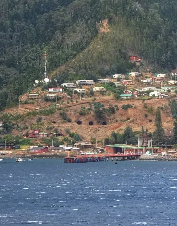There was quite the welcome party on the jetty too. Not only had a team of Regent crew members been given the task of assisting everyone up those twenty slippery steps, but Chilean Naval personnel and a few members of the local police force were there too. I recognised a couple of young restaurant staff on the steps - not difficult, as they were wearing their usual restaurant working uniform - no coats or sweaters.