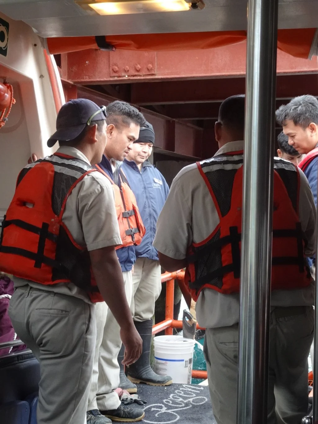 Though boarding the tender was far from easy, as always there were plenty of strong arms on offer to assist and the experience and seamanship of these gentlemen was key to getting everyone safely from one moving vessel to another.
