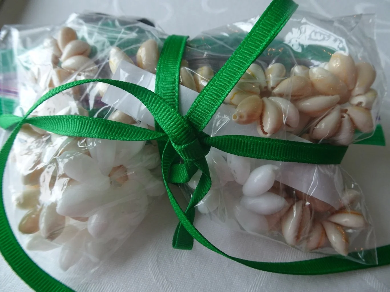 June had some examples of how the nuts could be arranged and having polished each of them using a little oil, we began to thread them together. She had painted some of the nuts with our destinations en route across the Pacific.