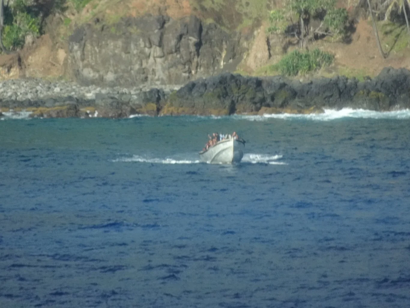 From here, we went right “up top” to watch as we sailed around the island. As we did, we noted some landmarks: Fletcher Christian's cave and St Paul's pool amongst them.