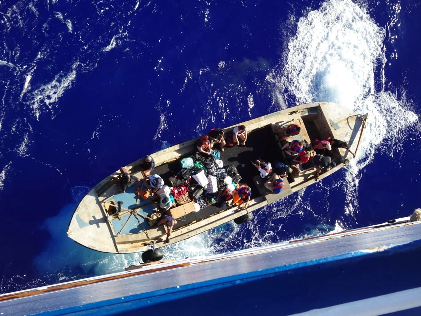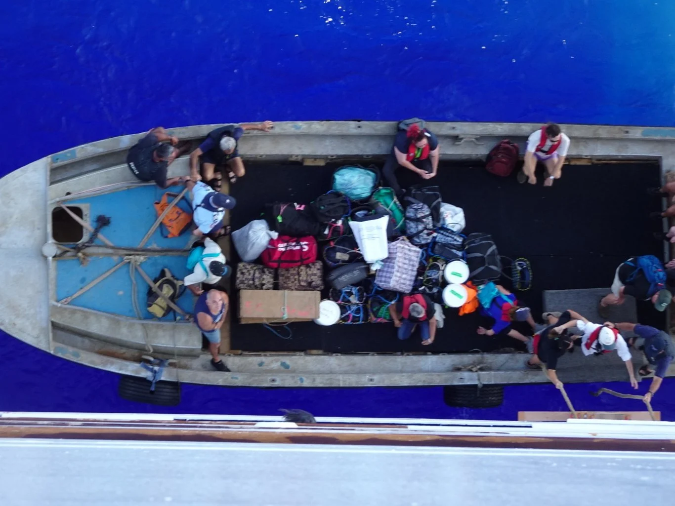 As it came alongside Mariner, we could see a large group of people on board, together with a small amount of cargo.