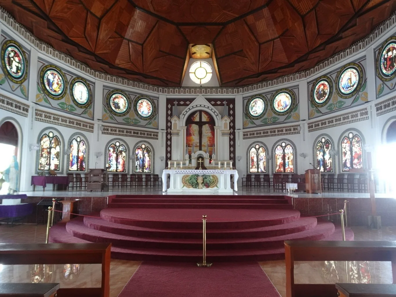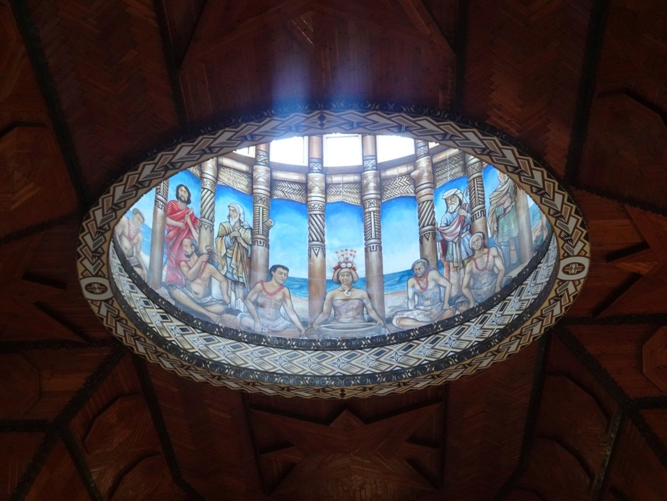 Most eye catching of all was the Samoan Last Supper, painted on the lower rim of the cupola high above our heads. We sat down on a pew and gazing up, would have happily sat there for longer…