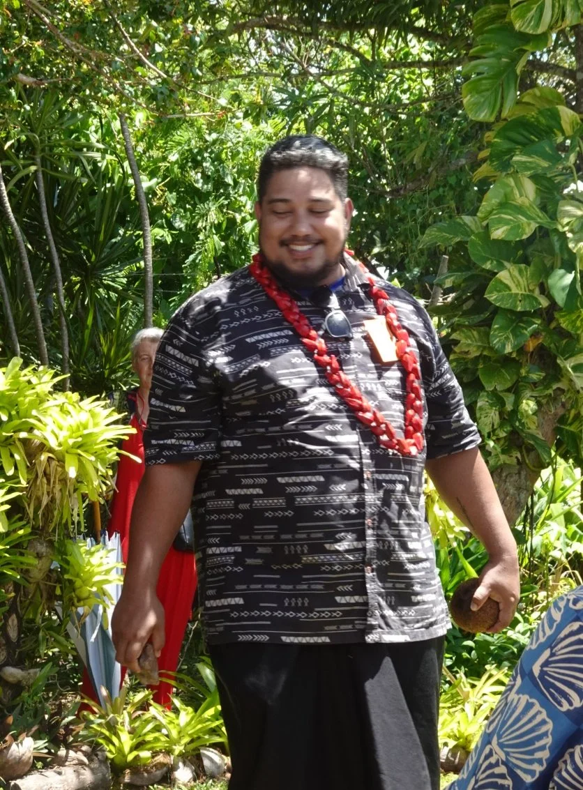Our next stop was in another garden, this one planted with fruit and coconut trees and which had been set out for us to sit and watch a demonstration of shucking a coconut. Again. Was this the third or fourth time we'd seen it done?!