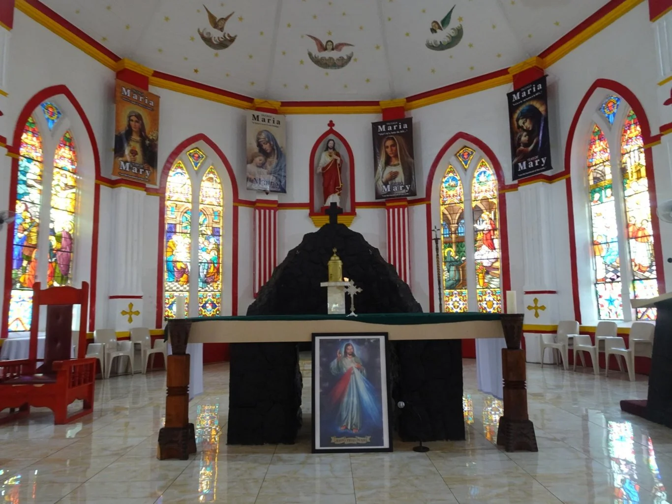 THe altar was set in front of a large piece of volcanic tufa, which set it off with appropriate importance.