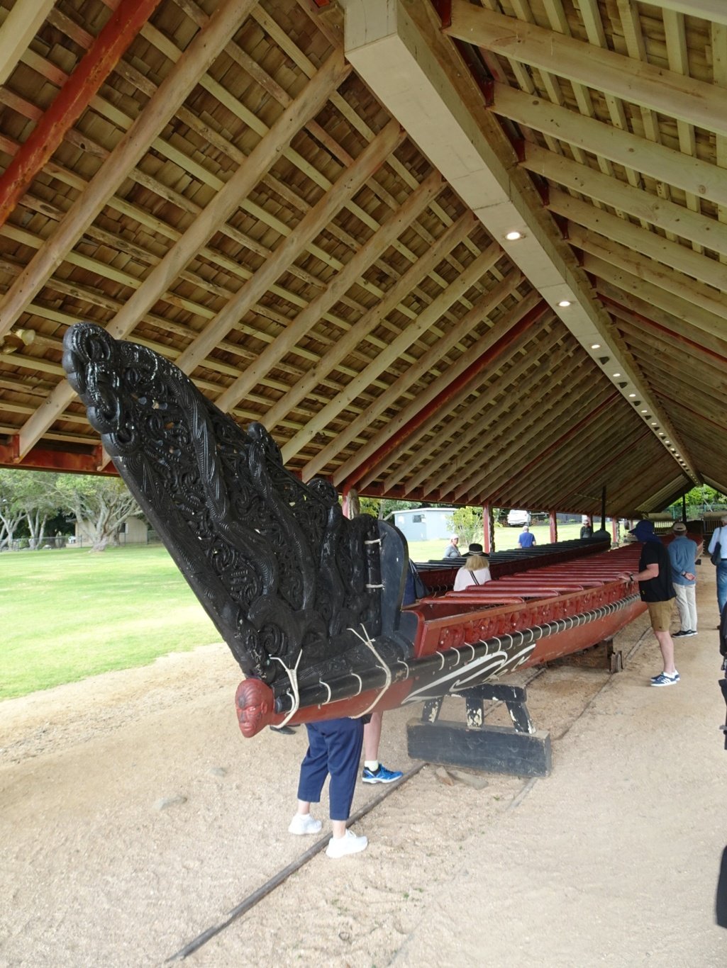 It proved a challenge for me to negotiate the downhill gravel path to the boat house but with my Hero on hand, I made it This war canoe or waka taua is the largest in the world and is taken out every Waitangi Day in February each year. Forgive me the legs it appears to have - rather than edit them out, I left them in place 🤣 !
