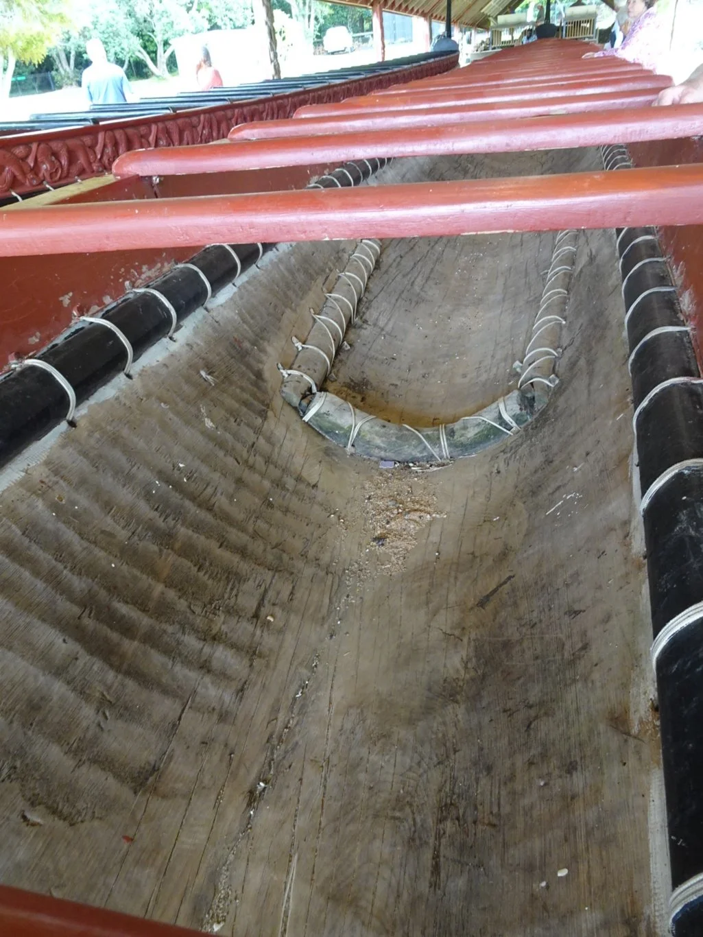 I asked Sissi what had been used to plug the holes. “nothing” she replied, “the kauri wood expands in water and it becomes watertight as the wood swells. For that reason, it's taken out into the water three days before it is used”. Interesting!!