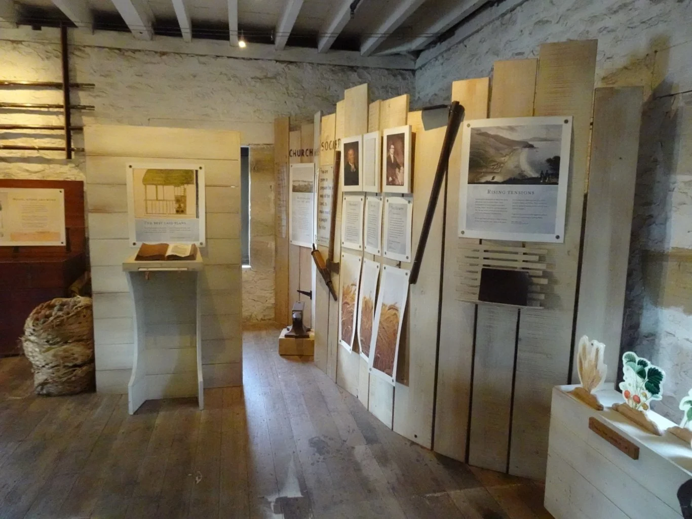 Inside the house were a variety of artefacts in similar vein to the Kemp House earlier, but this was more about the house itself and the restorations that had been made. I enjoyed reading this small story about James Busby's family life on the wall, which had been nicely framed by the window frame in this recontruction.