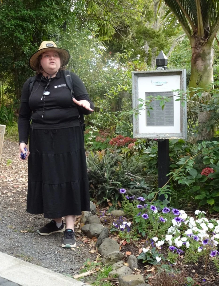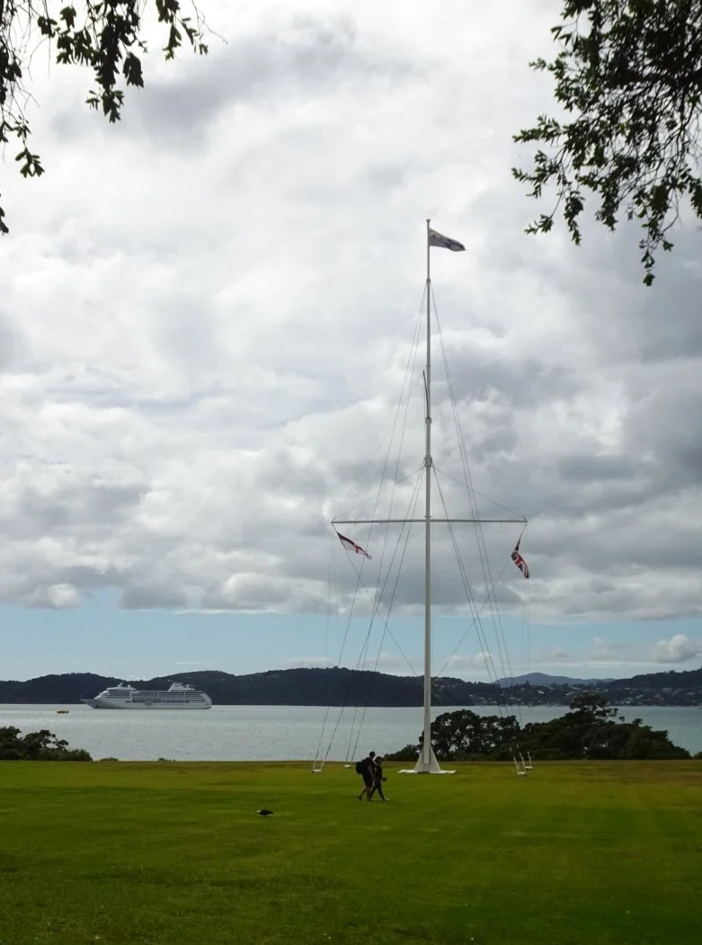 We set off through the grounds towards the flag pole, with Mariner conveniently sitting in the bay behind. As we walked, Sissi told of the history of this place, of Viscount Bledisloe and James Busby, British Resident of New Zealand in 1833.