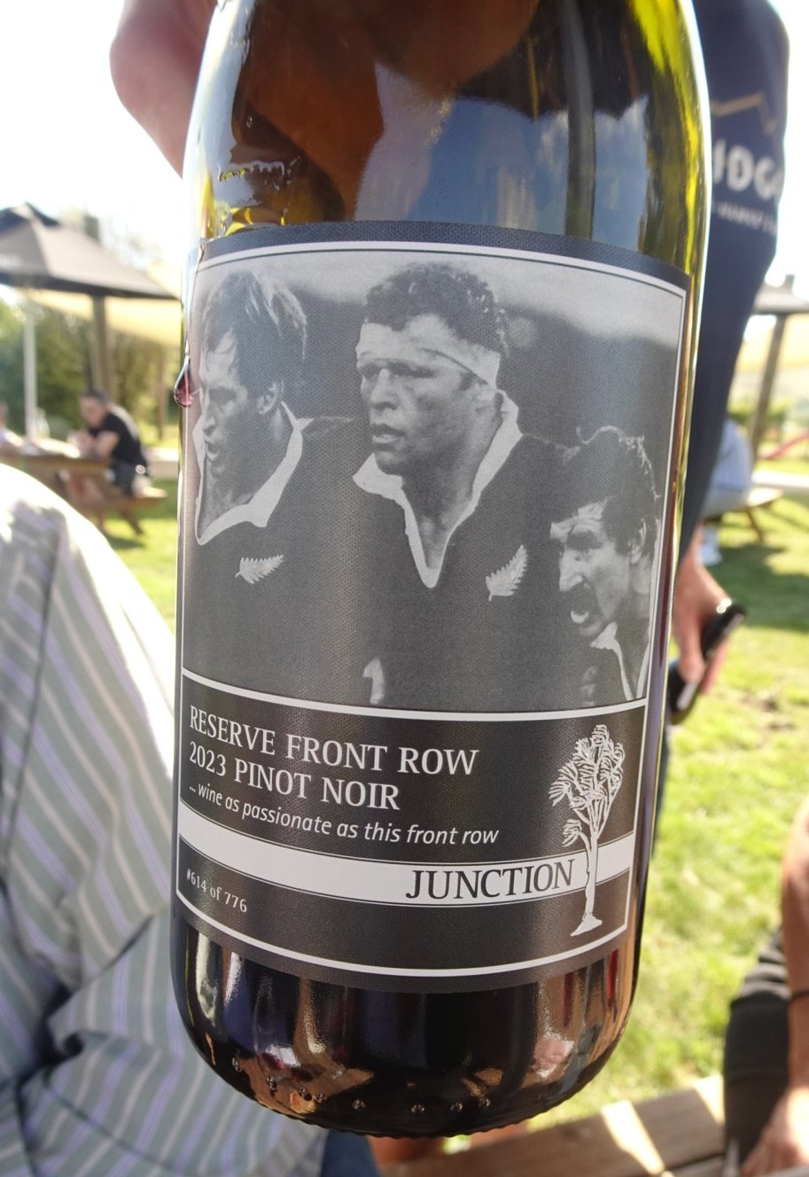 There followed a delicious Syrah called Nelly Noir, named after the family's Black Angus cow, and then the Reserve Front Row Pinot Noir which had a somewhat strange label. This too had been named after a family member, John Ashworth, who'd been a forward with the All Blacks, Leith said.