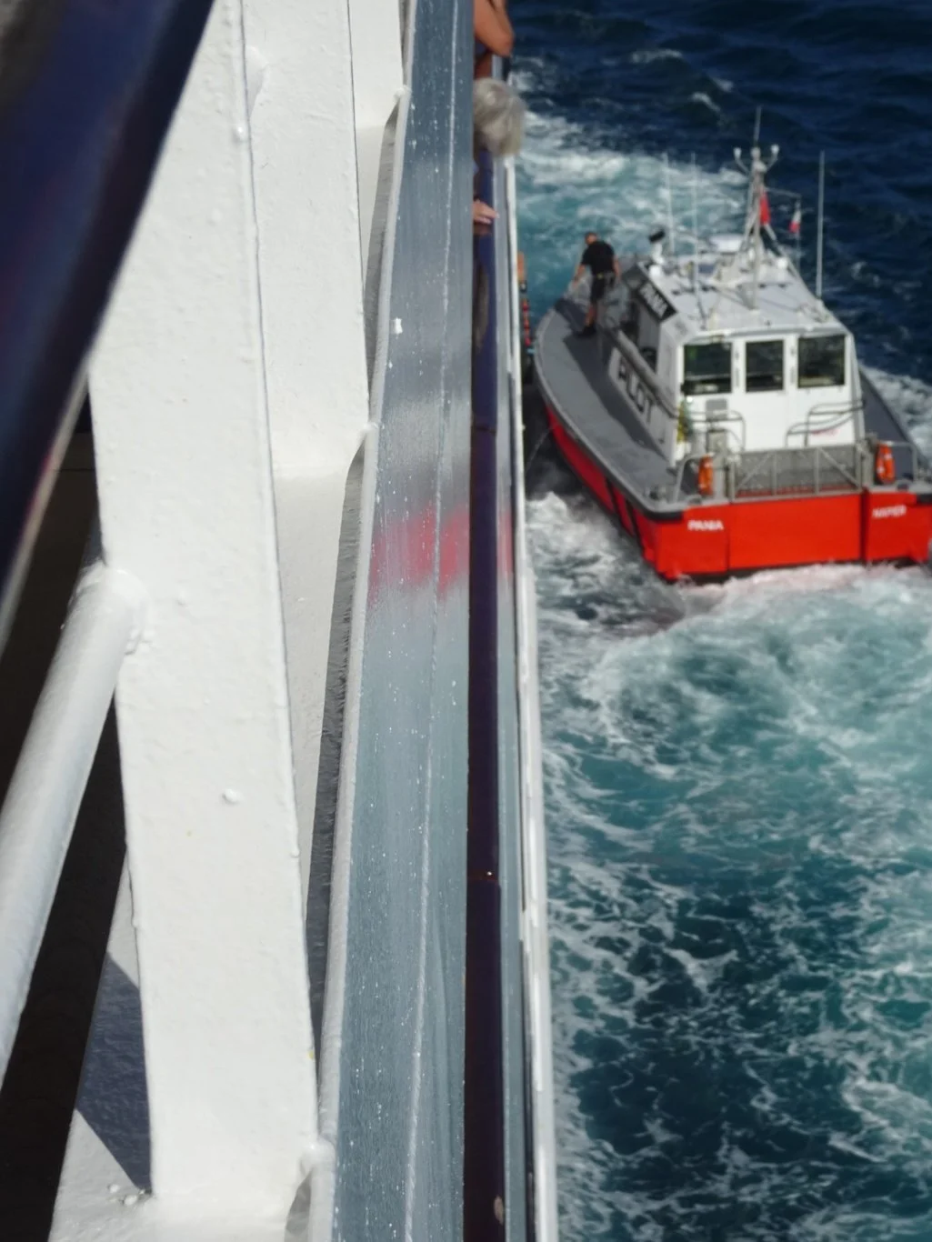 We poked our heads over the side to see what was going on, just as the pilot jumped on board.