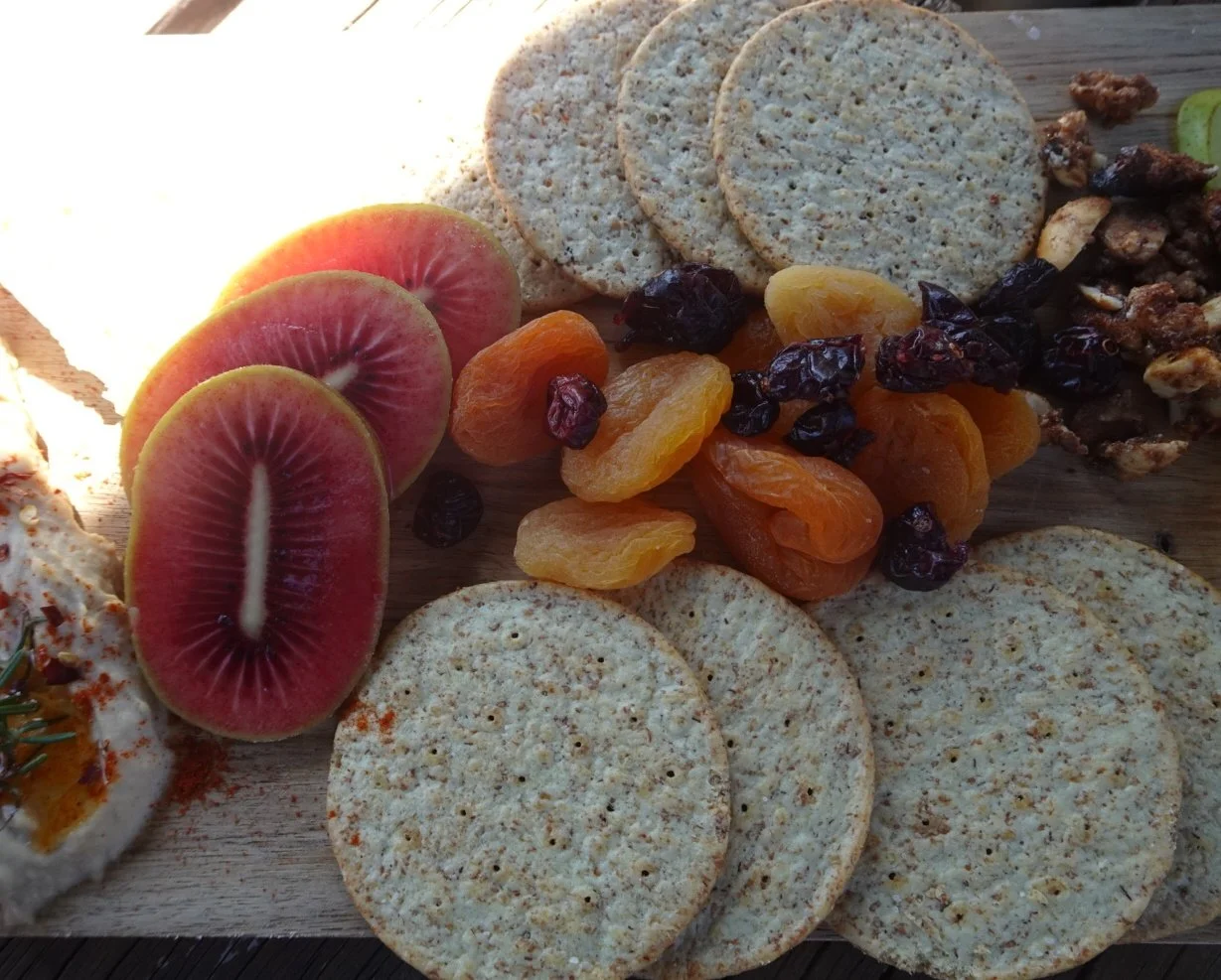 He was soon followed by a young woman bringing over a platter of cheese, fruit, hummus and oatcakes, including some incredible red kiwi fruit (far more tasty than those we'd tasted in Tauranga, too)