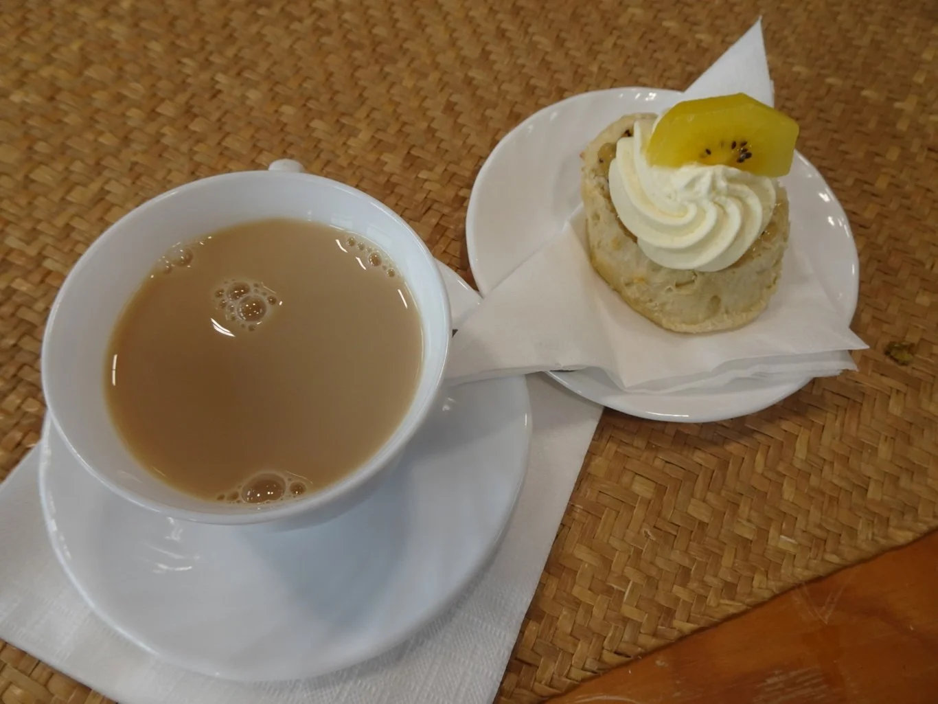 Grandaughter Isabelle was pouring tea, his wife was behind the counter and there were probably other members of the family I didn't get to meet. But the scone with cream and jam (Kiwi, of course!) was delicious and the tea was the best cup since I left home!