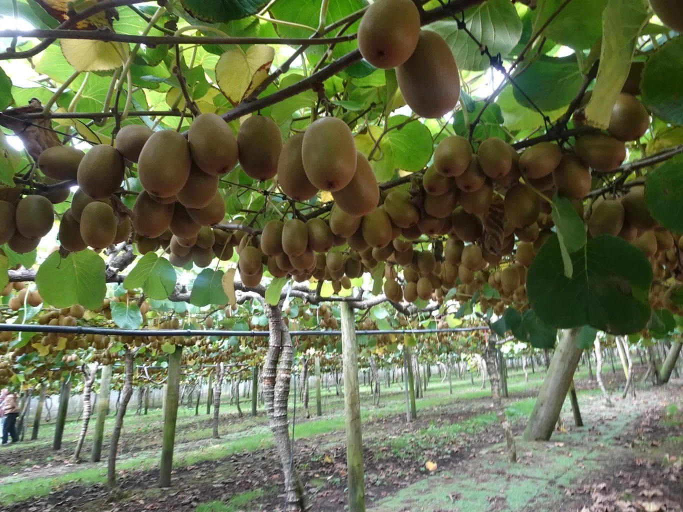 These are golden kiwi, almost ready for harvest, we learned. During the last year, the blossoms on the vines had been pollinated by several million bees brought in for that purpose and throughout the growing season, care would be taken to remove any less than perfect fruit or vines in order to ensure that only the strongest and best could flourish.