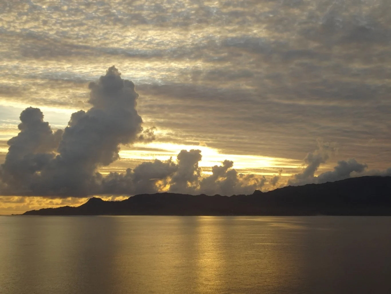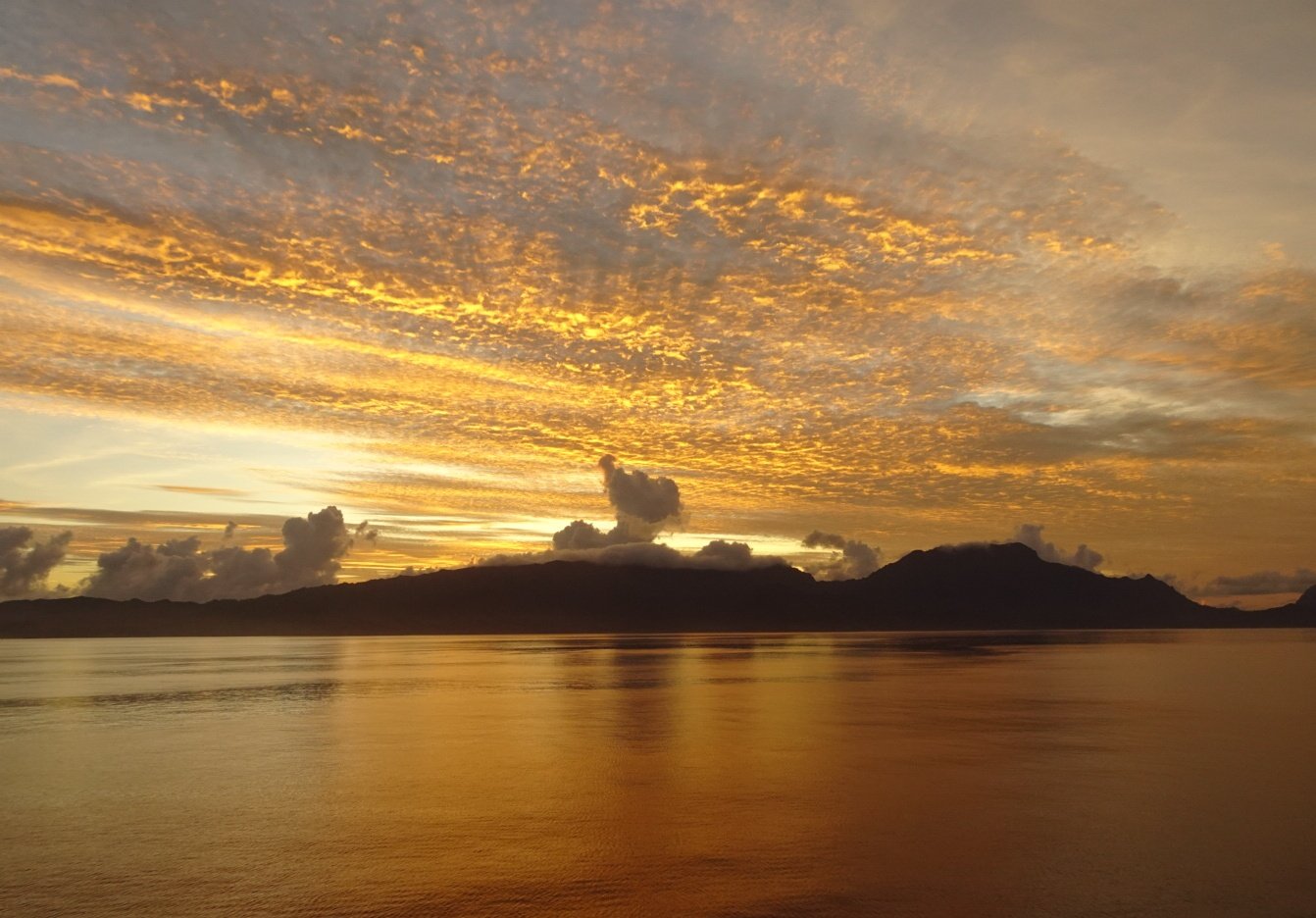 We had the perfect start to the day as we arrived off Raiatea. Captain Abhi had announced last evening that he'd gained permission to take an exceptional route into port here, taking advantage of what was forecast to be a beautiful sunrise.