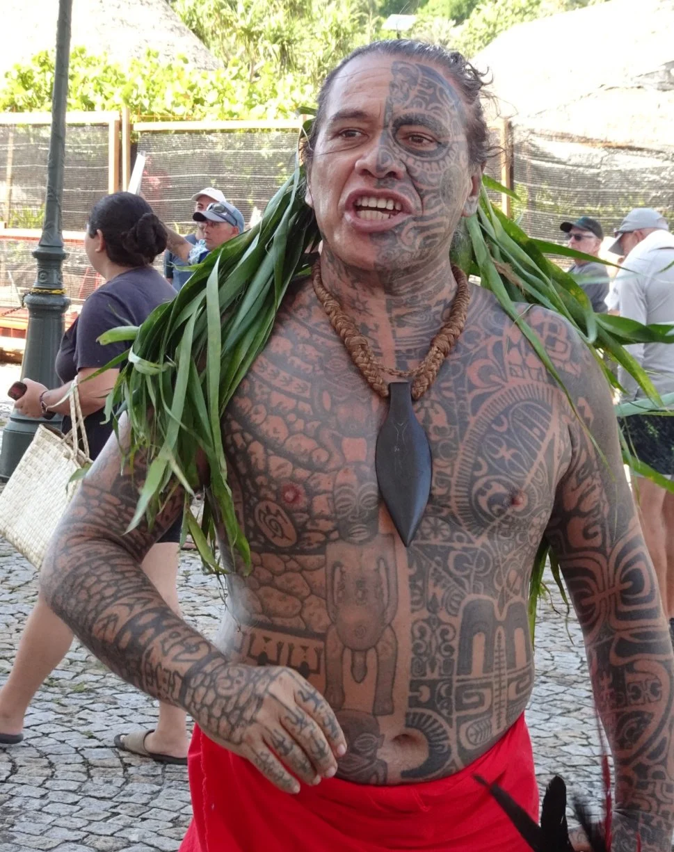 Our guide for the day was TiHoti, tattooed from head to toe, standing barefoot and wearing just a red cloth wrapped around his waist.