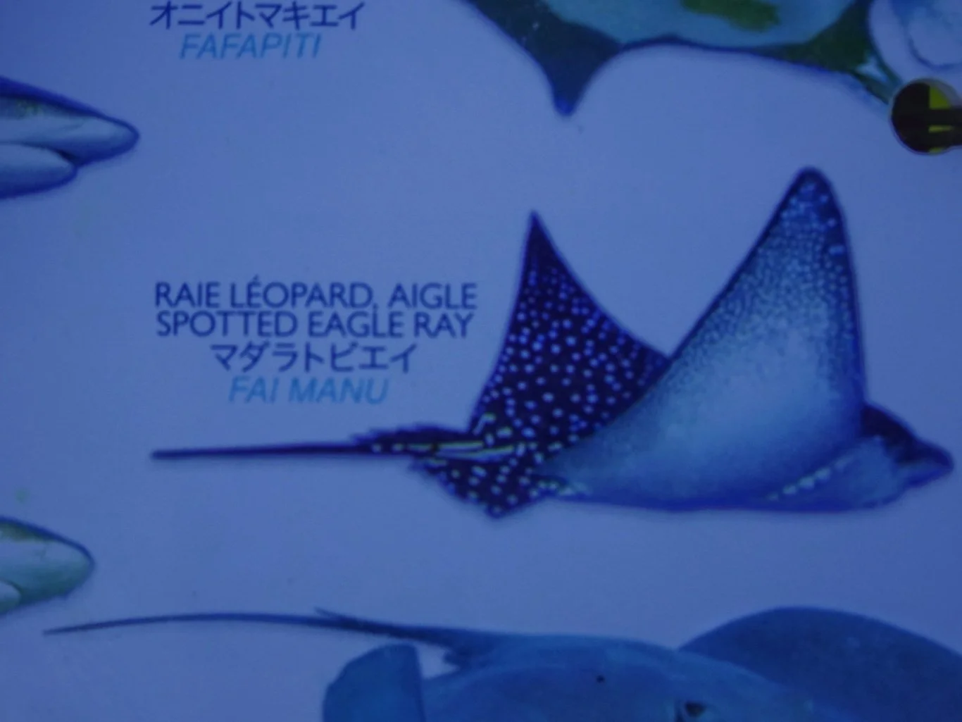 As we watched, trying to see both through the glass bottom and over the side of the boat at the same time, juggling camera and reference card whilst keeping our balance in the rocking boat, the female ray did a spectacular “flypast” beneath the glass bottom, turning as she did to reveal her gills and pale coloured underside. Wow. One of our party snapped the perfect photo - sadly mine is in my head as frequently happens.