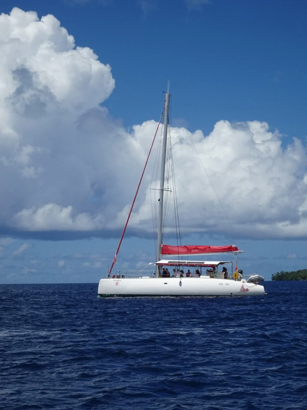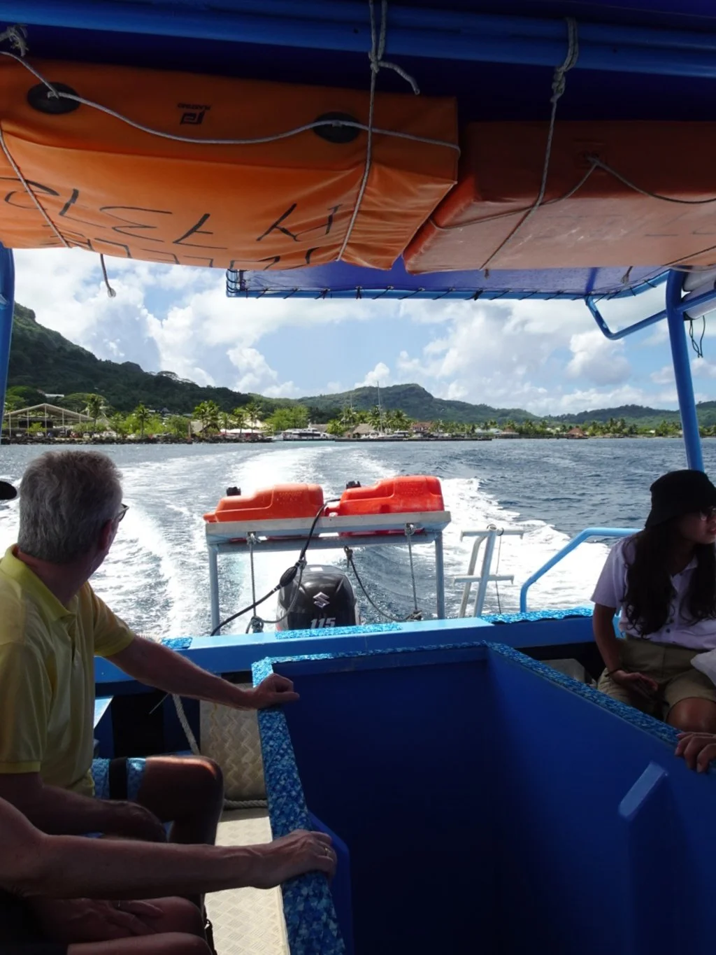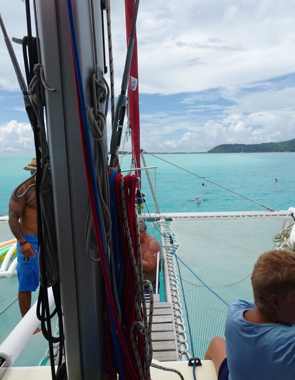 We were greeted on board the catamaran that was going to take us out into the lagoon, to swim and snorkel.