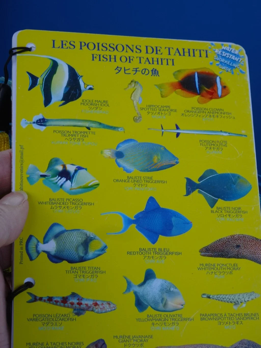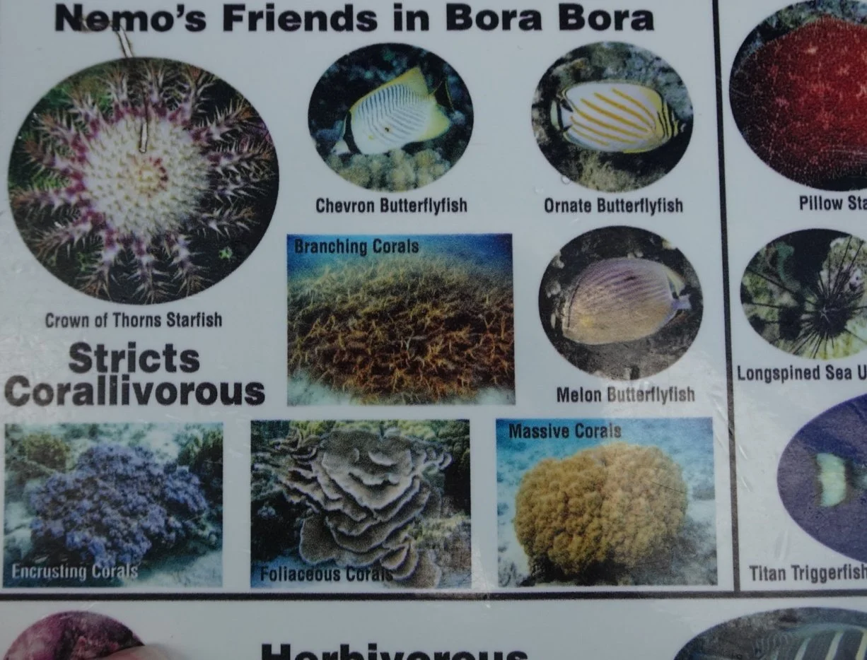 He'd passed around waterproof reference cards to assist with identifying the fish and the coral we spotted.