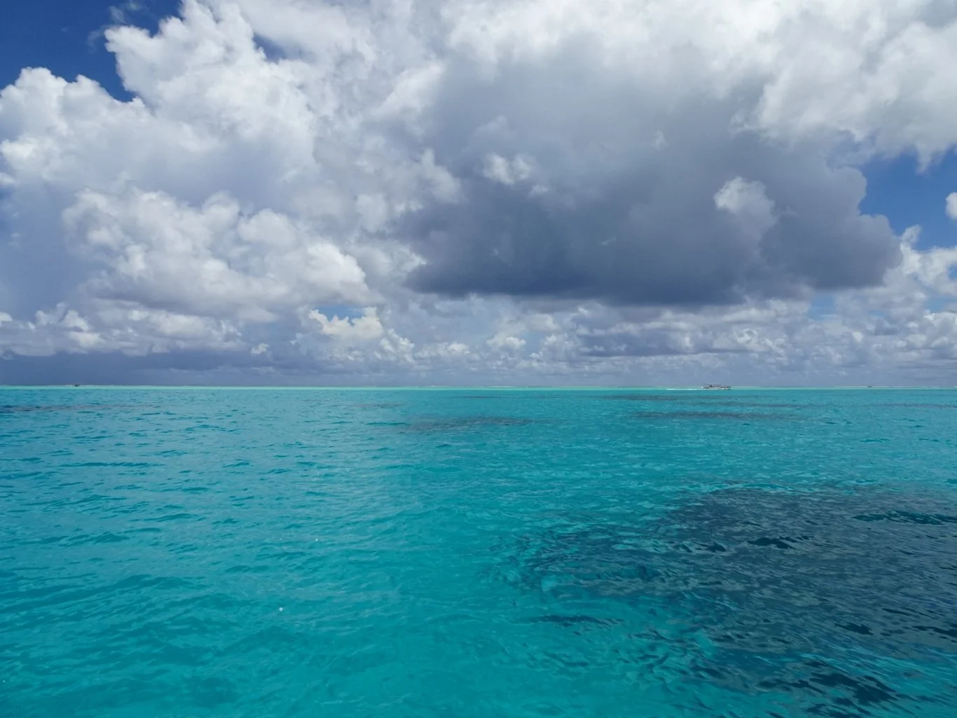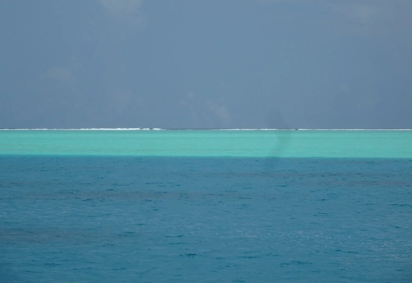 As we sailed, the number of shades of blue multiplied with the addition of the white surf over the reef.