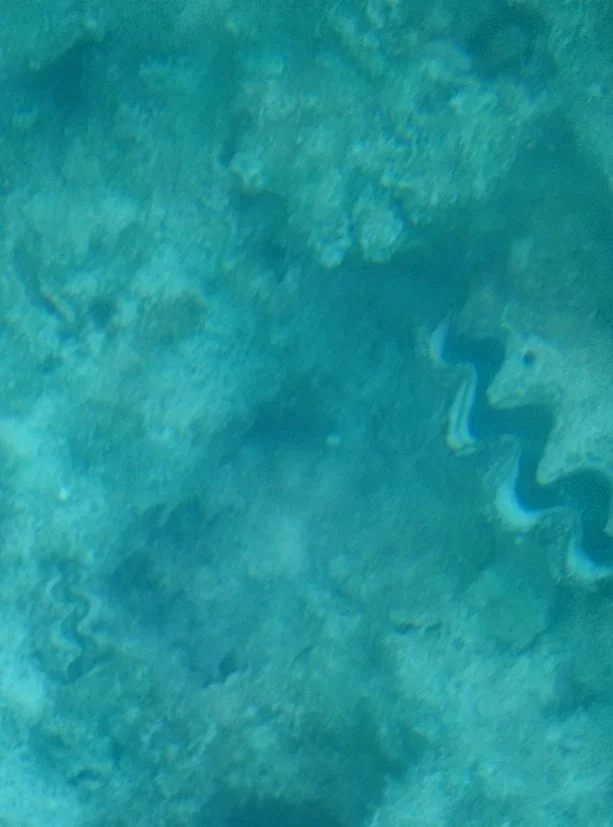 I loved the clams, which were opening and closing gently, bringing the reef to life. Small black fish were in crevices here and there and bright yellow and black butterfly fish swam past from time to time.