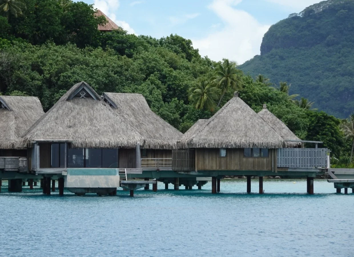 We sailed past one of those classic Bora Bora sights; a collection of over-water bungalows which were part of the Conrad-Hilton resort.
