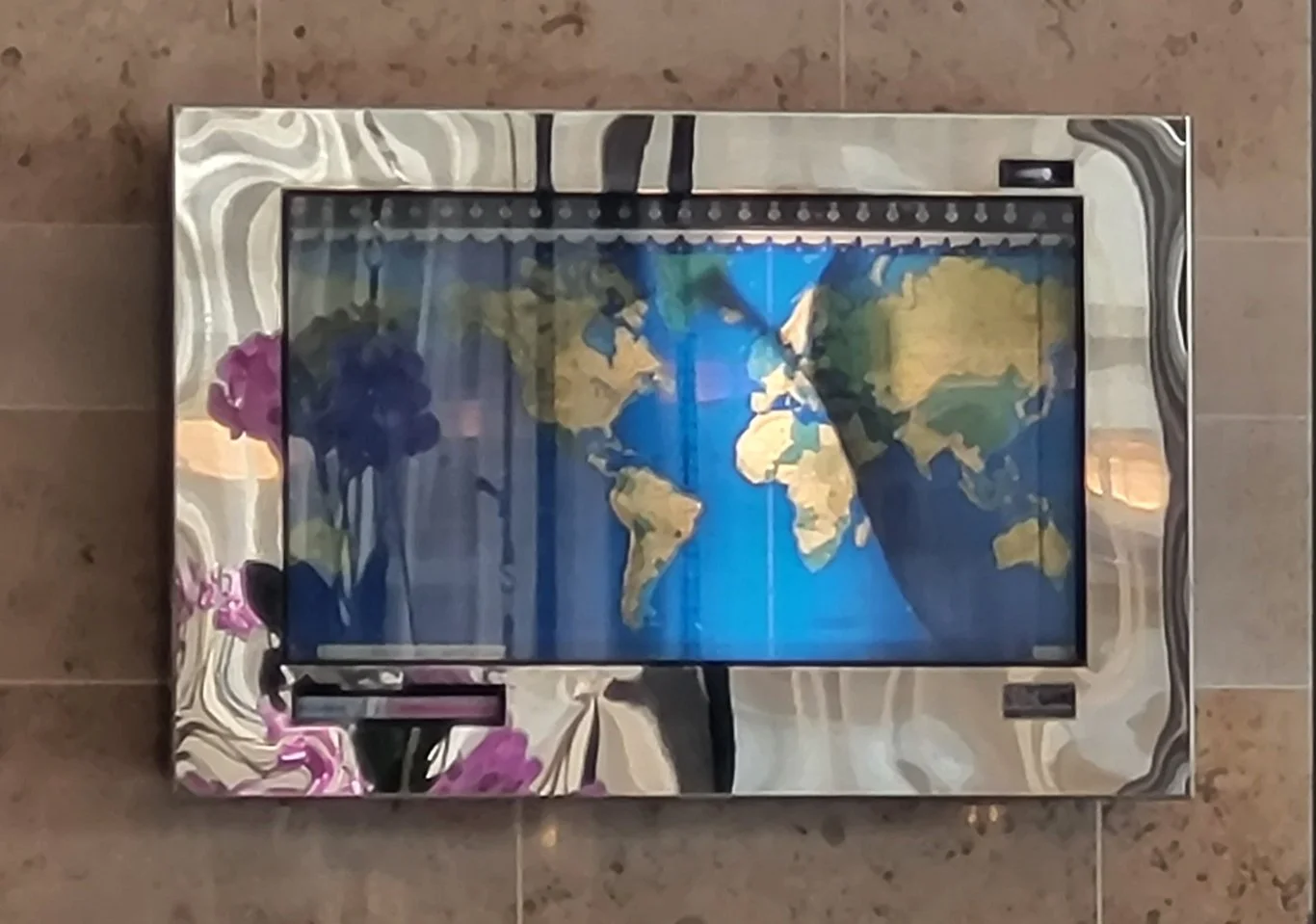 It's a photo I took on Thursday evening at the Sofitel at Heathrow T5 where we were overnighting before our flight to Berlin on Friday morning. I took the picture because I always think of my Daddy when I see it. Without going into too much detail, he always loved such maps, finding it fascinating to see how darkness fell around the world in that broad sweep. A simple but clear illustration of what could be regarded as quite a complex concept.