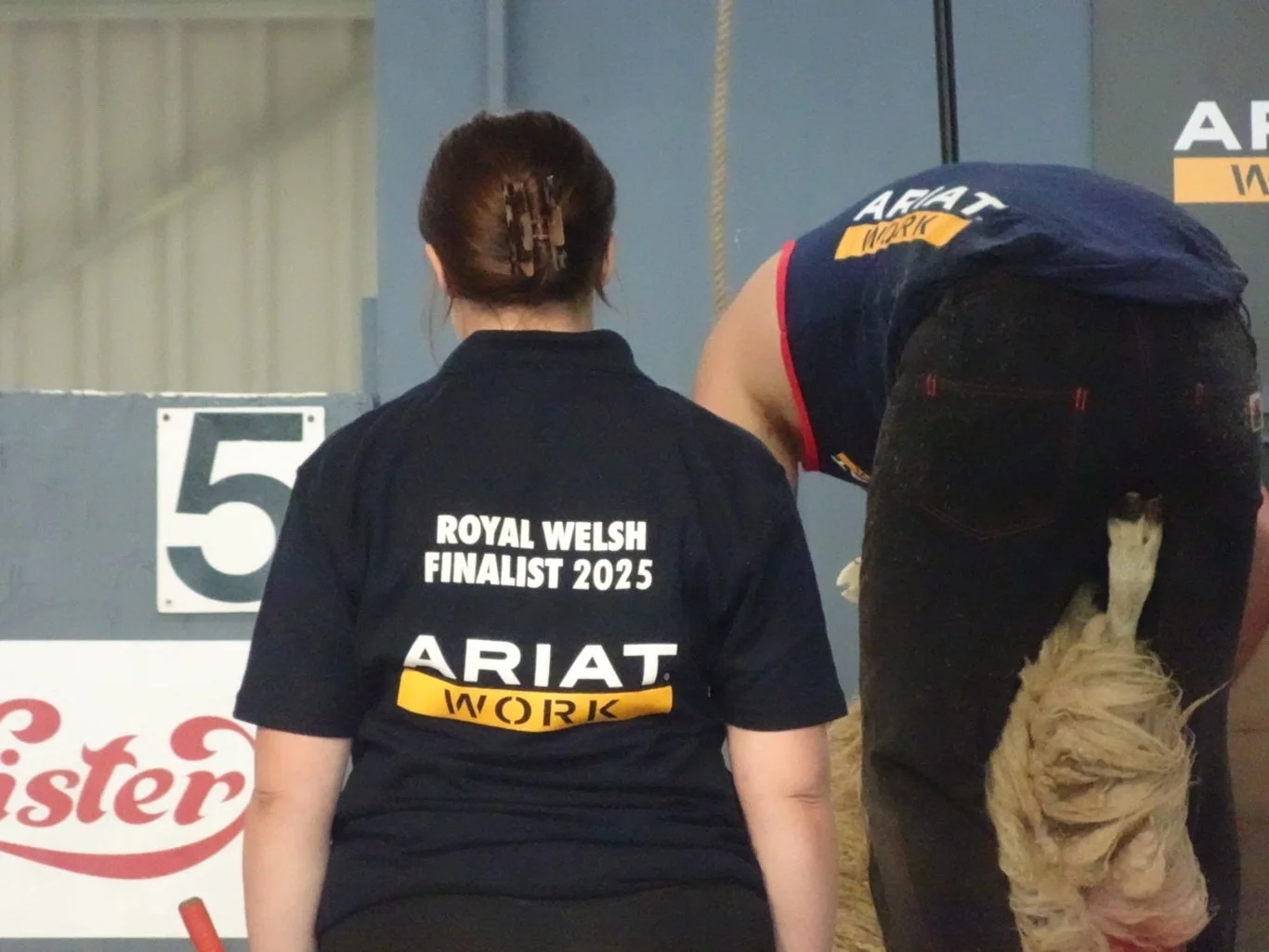 In the competition, each woolhandler was working with two shearers, who had five sheep to shear between them. When the signal sounded, the first shearer would get to work as the handler prepared for the next stage by clearing their workspace. The handler in the photo above is one of the few young men in the competition, from Norway. This certainly was an international challenge, with competitors from Chile as well as the more local “home nations”, Scotland, Ireland, England and of course, Wales.