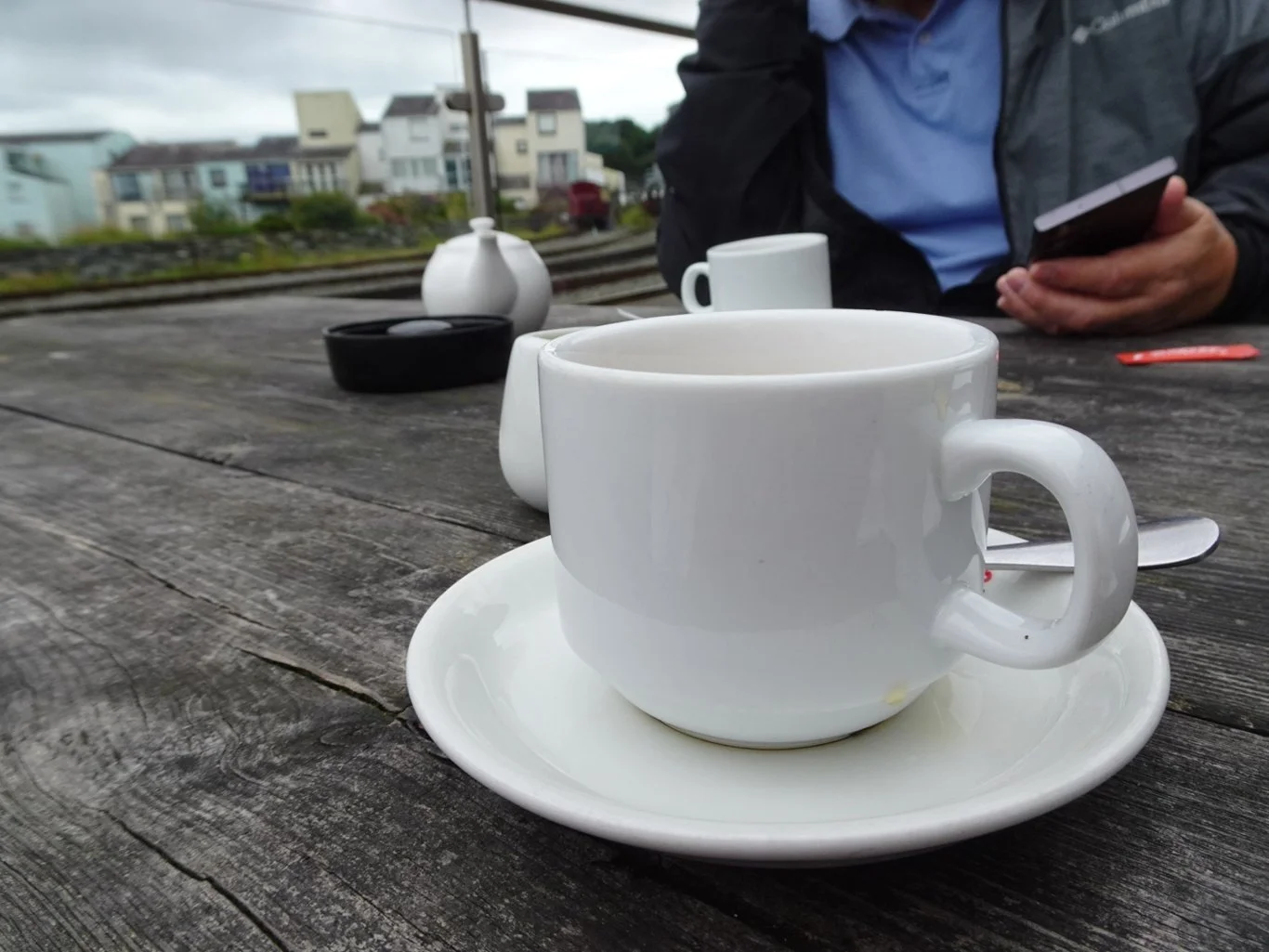 Shortly afterwards, we were sitting enjoying a cup of tea on the station platform in Porthmadog, awaiting the arrival of a steam train; the kind of daft thing we find ourselves doing when we're out and about.