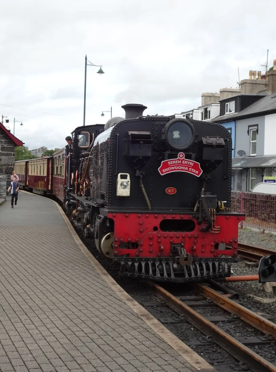 As the steam train puffed in over the road and into the station, our vague memories were proved correct, though the name of the dog was Gelert, the place name Beddgelert meaning “Gelert's grave”.