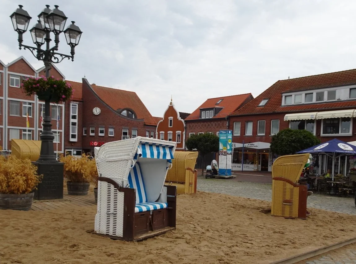 In the centre of Heiligenhafen this morning, the town square was covered with sand and a few Strandkörbe had been placed around and about.