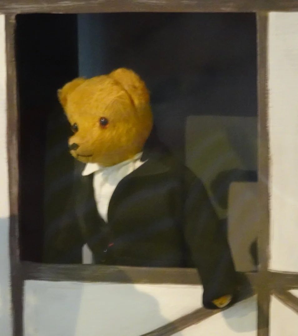 Today, we were simply interested in the characters in the house over the way. Almost all German in heritage, many with the Steiff button in their ears, there was a large collection of bears of all sizes and ages.