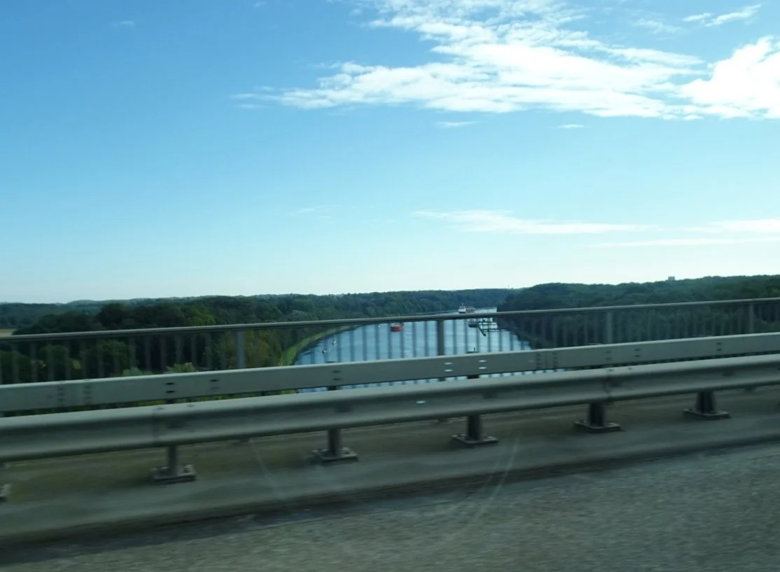 Along the way, we drove through the city of Kiel and of course, over the canal. It wasn't easy to see due to the high barriers on each side of the bridge.