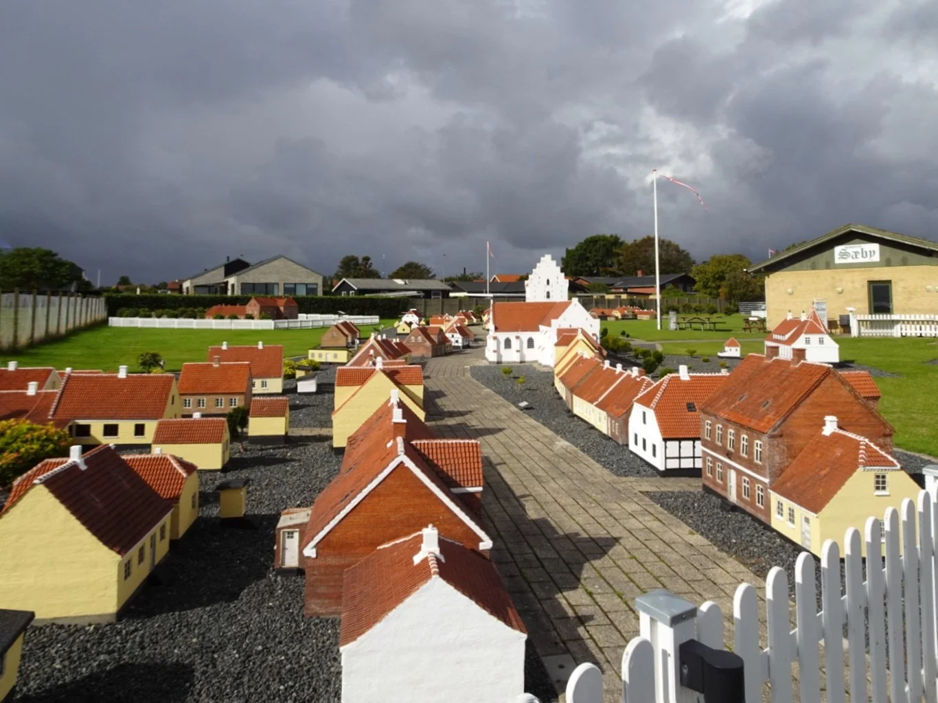 Next came Saeby, a rather larger place with four complete pages in our booket, with particular mention made of the miniature village here. We took a fairly quick look over the fence but didn't linger, for not only did we still have some way to go, we were watching changes in the sky overhead.