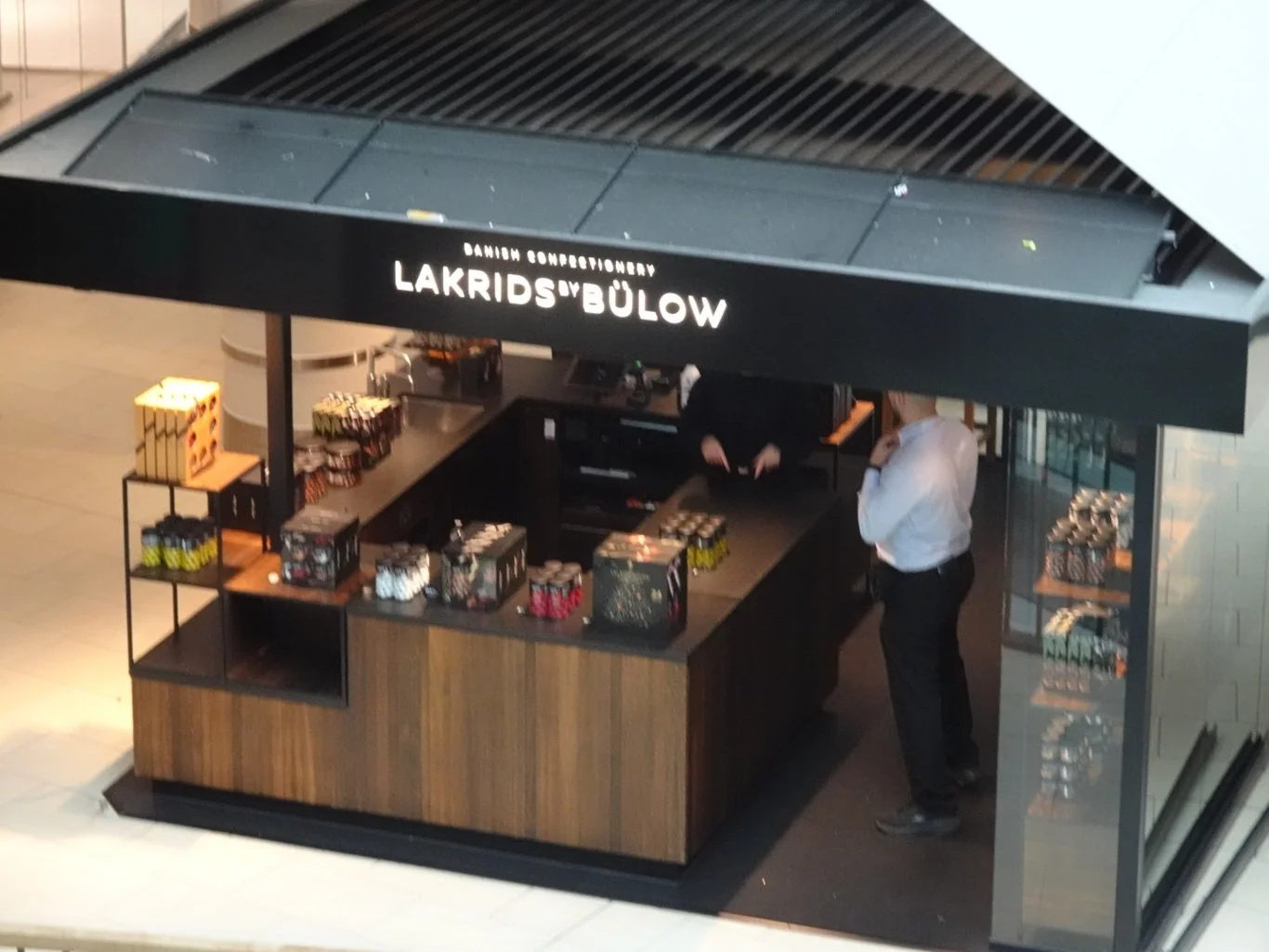 One thing on our list didn't involve bobbing and weaving through miles of goods for sale: the Lakrids shop was almost the first thing we saw when we left the car park on Thursday afternoon. This brand of liquorice is our favourite and for the last few years we've indulged ourselves with one of their Advent calendars. This entitled us to free samples of new flavours whenever we're in the shop - but since we are never in one of their shops, we don't really benefit. Until now!
