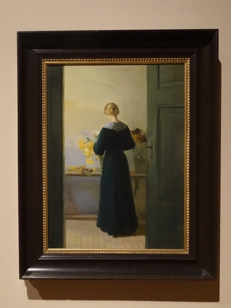 Another work of the Skagen artists was hanging nearby. Anna Ancher's work caught my eye but sadly, I can't find the title anywhere. It's typical of her compositions though, with a back view of a female figure in a domestic setting.