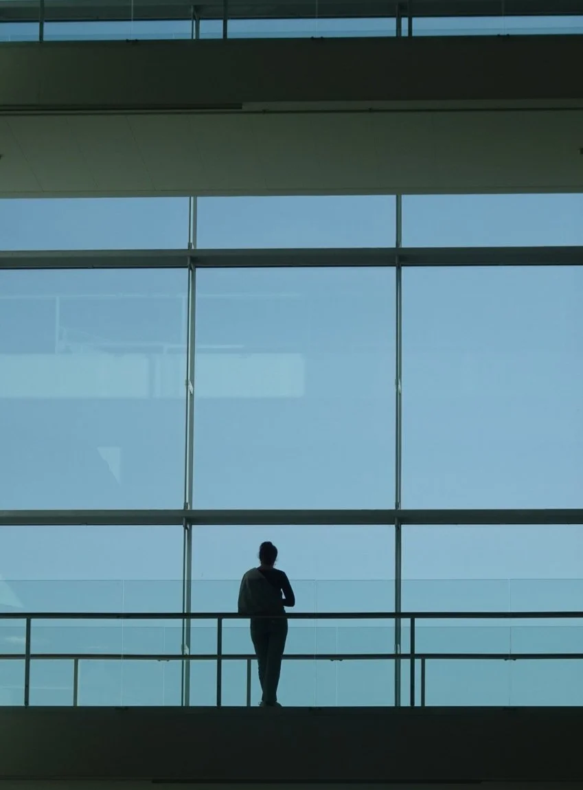 Whilst my Hero got the tickets, I was bemused by the person standing - posing - there in front of the huge glass window. (Or was it really an Antony Gormley-esque figure?)