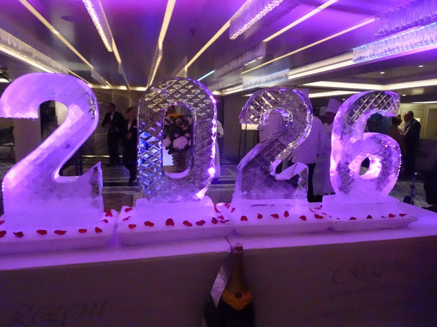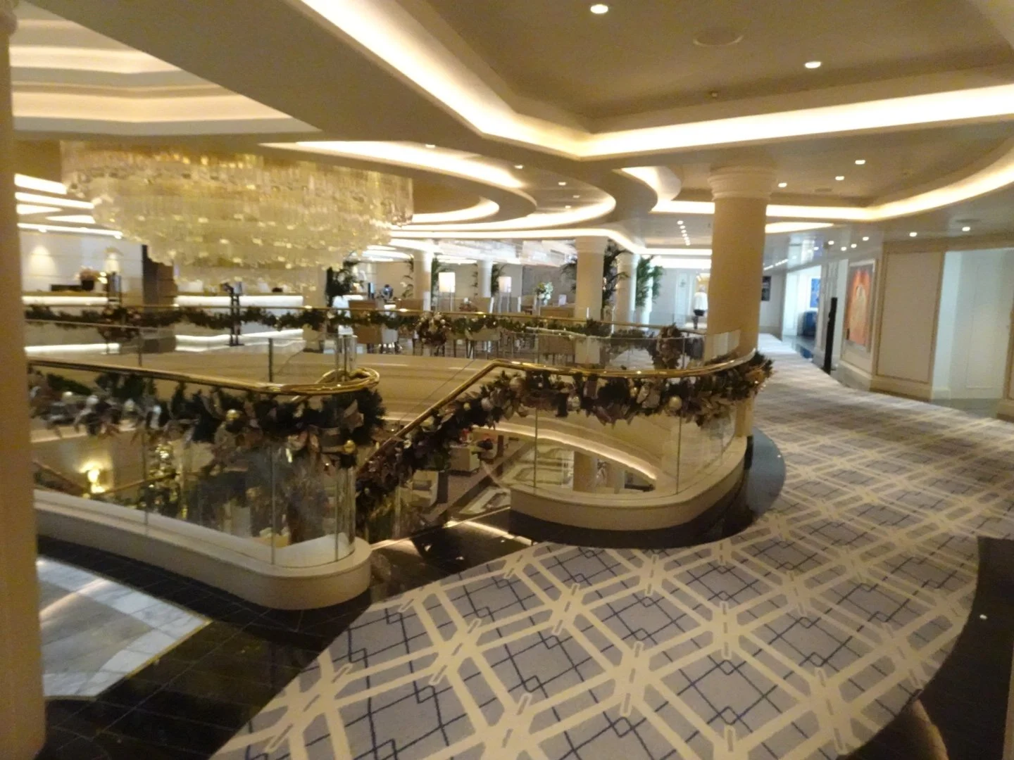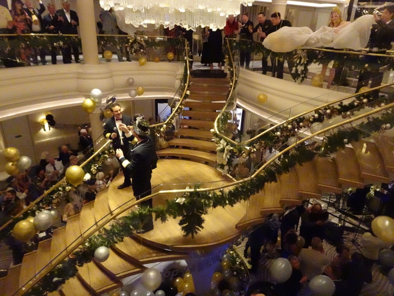 The ship had been beautifully decorated for Christmas and there were a few minor adaptations for the New Year celebrations, mostly involving balloons. After a sumptuous celebratory dinner in Compass Rose with friends, we joined everyone in the Atrium where the Captain began the countdown.