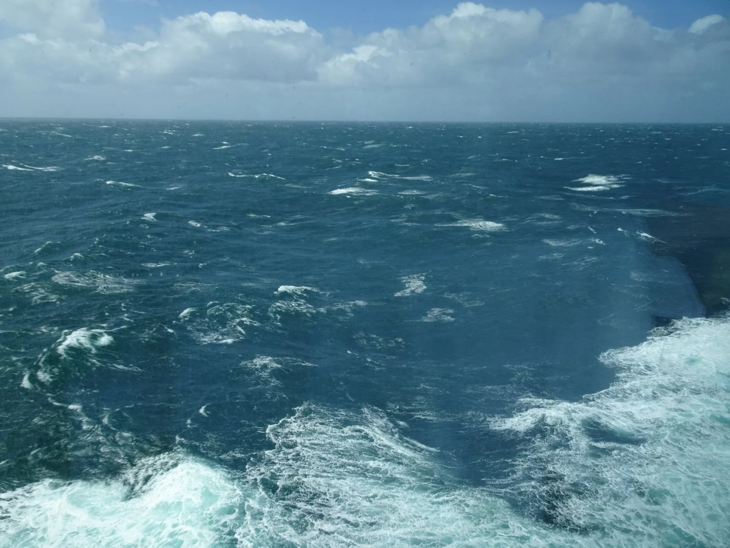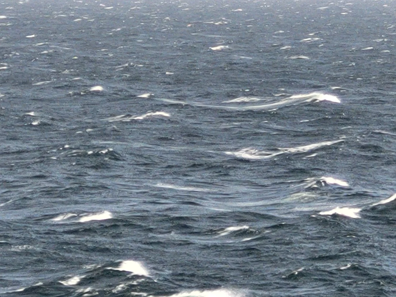 But actually, though it was only 8am (and the Captain’s warning had been quite specific about 9am being the predicted time), the seas were none too rough and though there was some motion, it wasn’t at all bad.