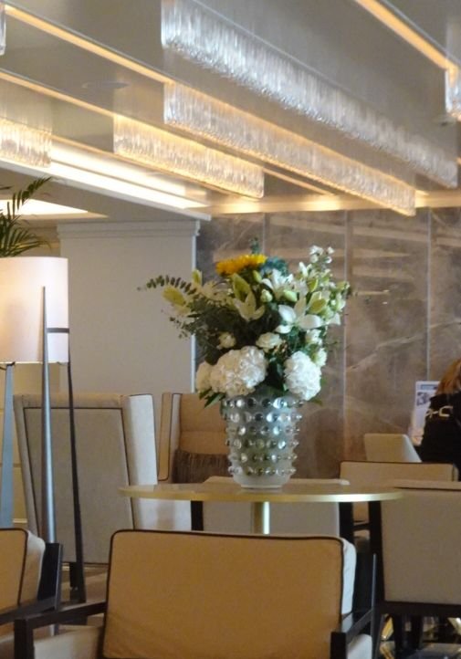As we headed for a coffee shop breakfast, I hoped the lovely Lalique vase - one of a pair here in reception - had been fixed securely down!