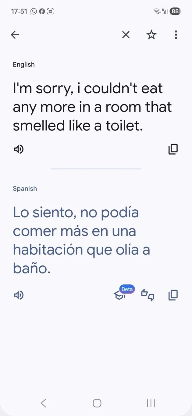 But conversations were tricky. I don’t speak Spanish beyond “buen dia” , “por favor” and “gracias”. After a few days I could remember “¿Cómo estás?” but didn’t understand the reply most of the time! Thank goodness then for Google Translate, especially when one can speak into the phone and get an almost instant translation, and it was that which helped us through several tricky conversations.