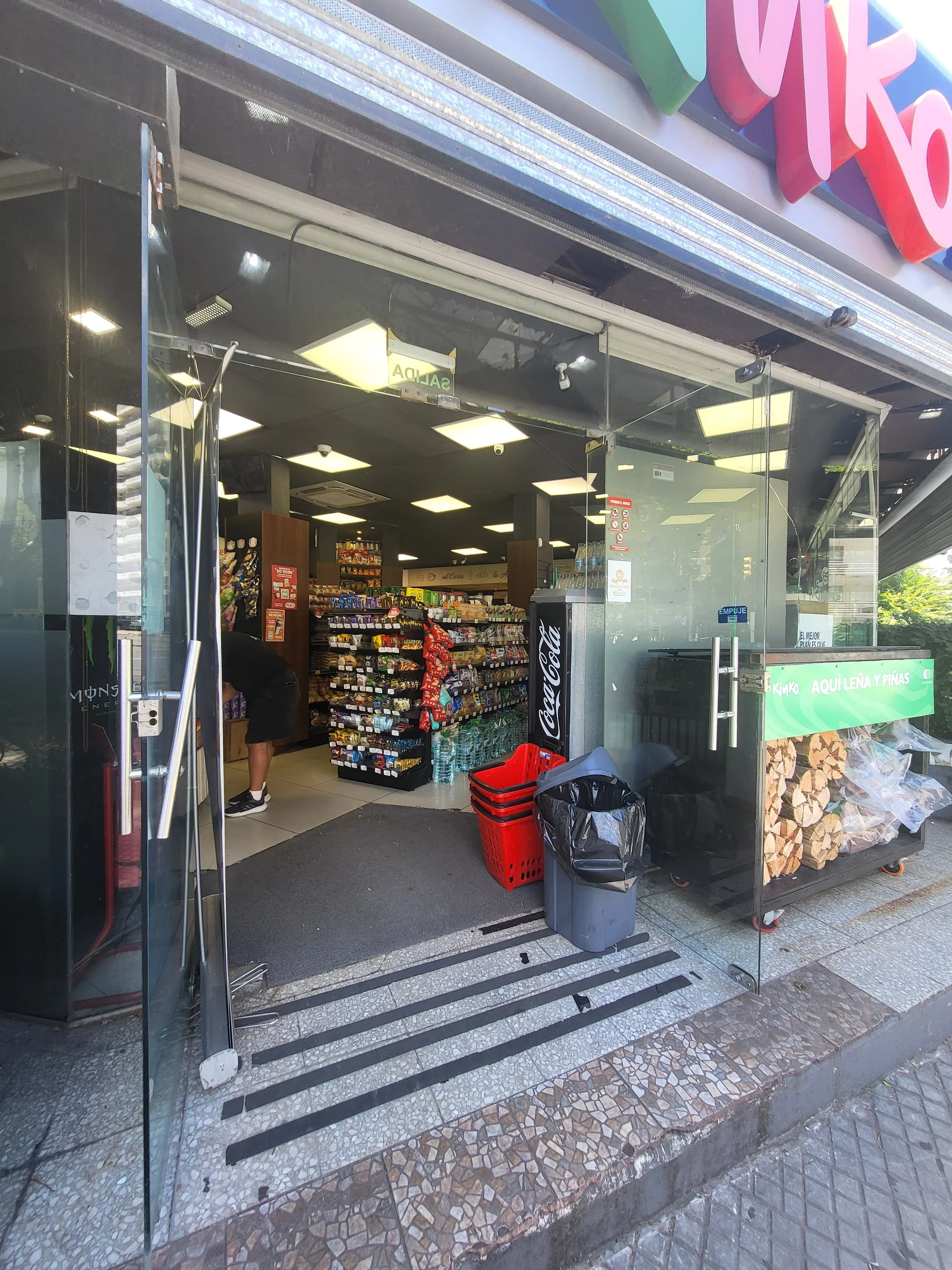 As we approached the shop’s entrance, we noticed a woman (waiting for a bus) sitting on a wall eating an ice cream.